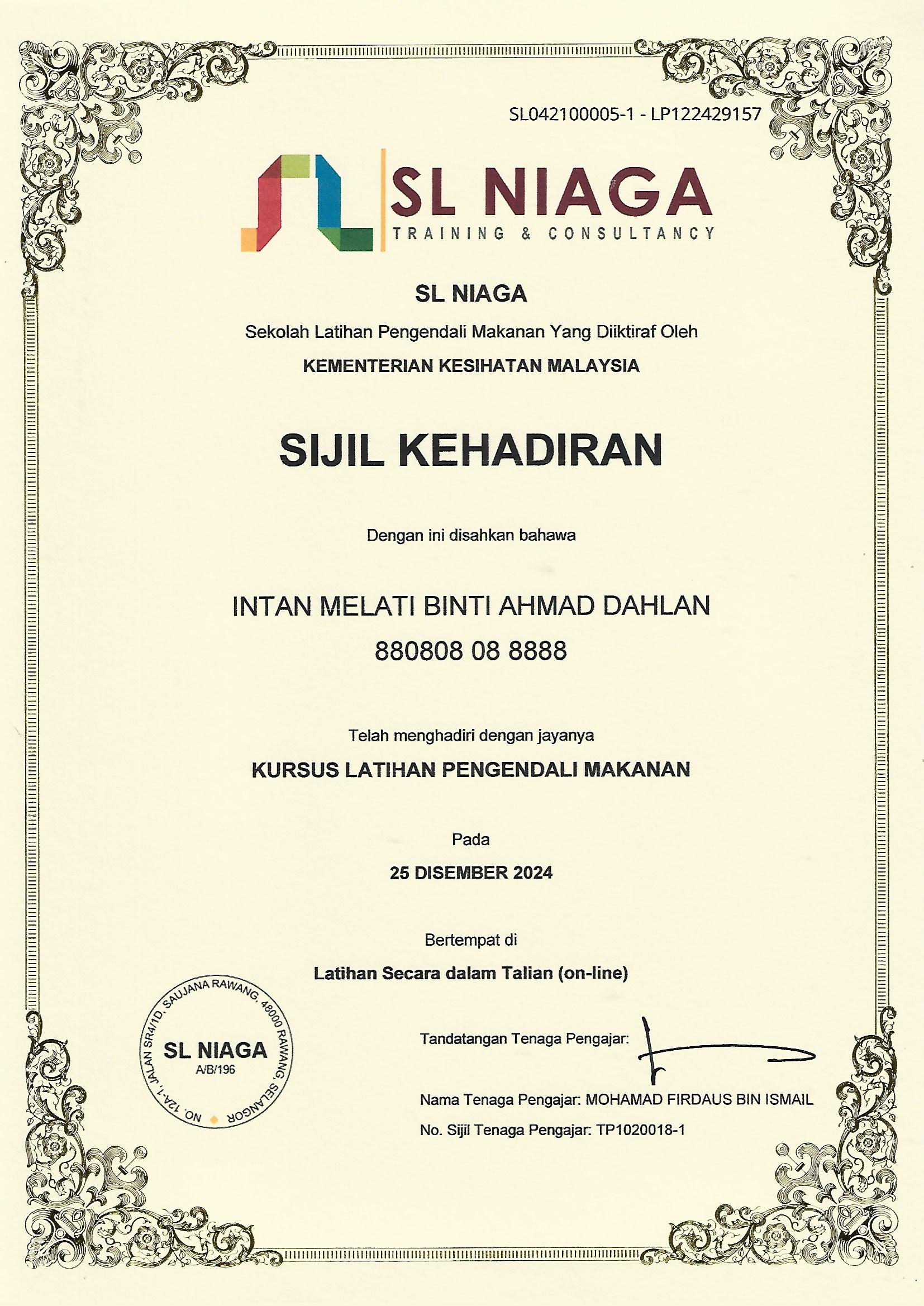 SIJIL LATIHAN PENGENDALI MAKANAN ONLINE